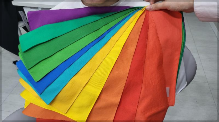 빨강, 파랑, 노랑, 녹색 등 기본 색상의 옷을 준비한 뒤, 각각을 얼굴 가까이에 대고 어떤 색상이 얼굴을 더 밝고 건강하게 보이게 하는지 관찰해 보세요.